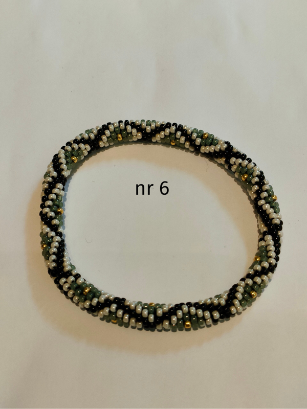 Elke armband is met de hand gehaakt volgens een spiraaltechniek waarbij de kralen tijdens het haken worden meegewerkt. Dit zorgt niet alleen voor een verfijnde en gelijkmatige structuur, maar ook voor een stevige en duurzame afwerking die jarenlang meegaat.